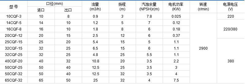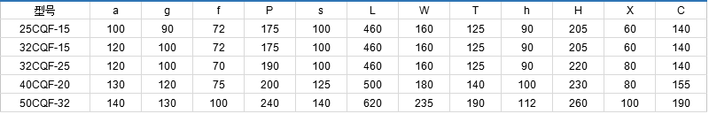 CQF products is mainly made of reinforced PP and flow-through pump parts adopt injection mould with resistance to most organic and inorganic acid,alkali and salty solutions,applicable for being exposed outdoor with fine anticorrosive performance of stress corrosion cracking.