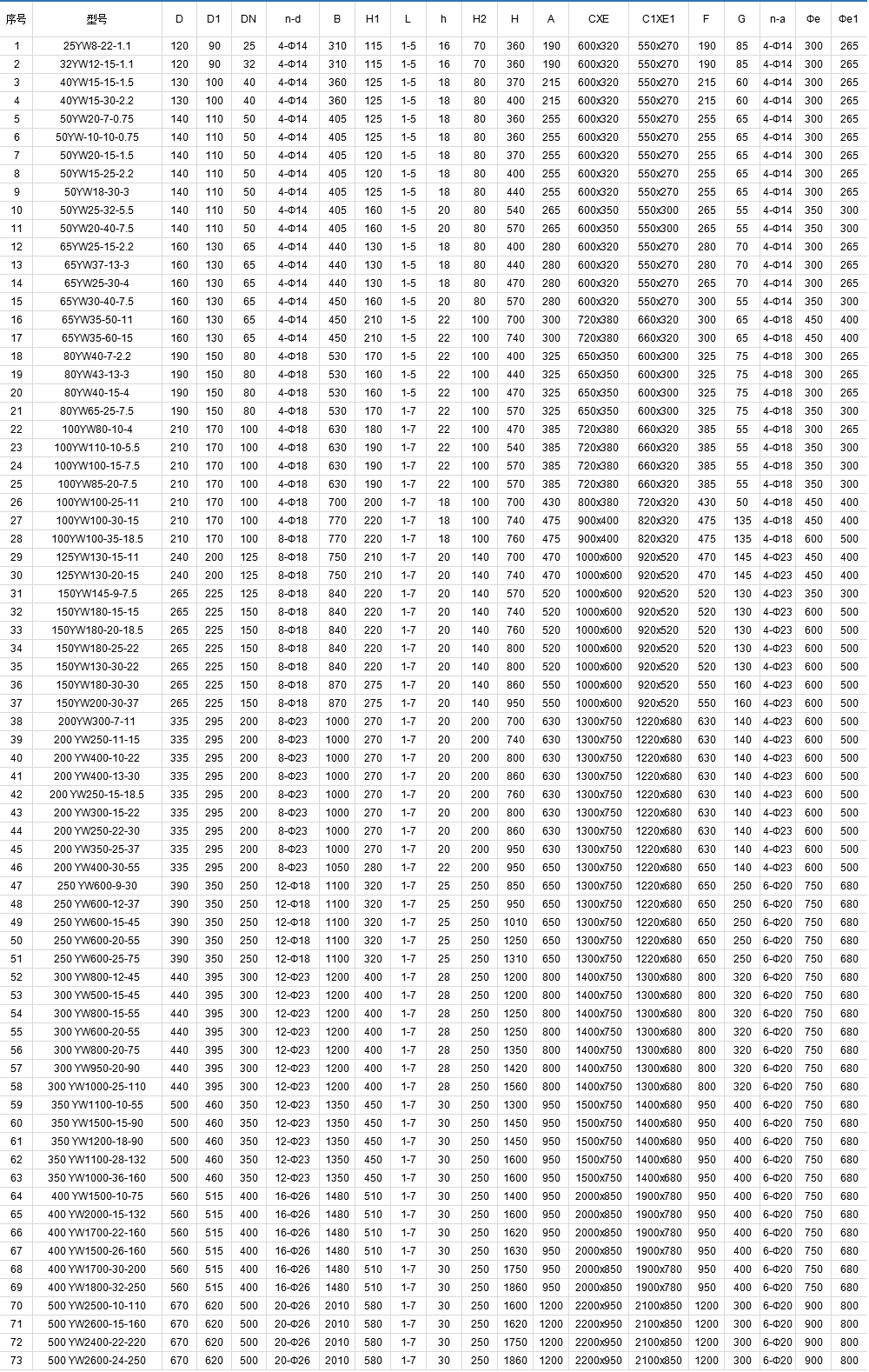 YW、YW、LW、GW型無堵塞排污泵性能參數(shù)